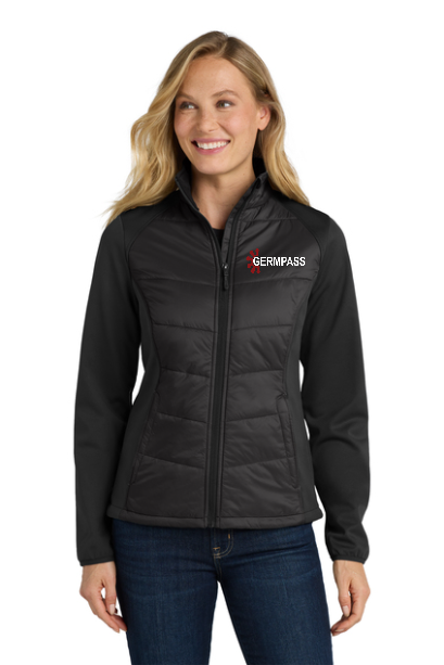 Quilted front and back panels join a wind-resistant, water-resistant soft shell to make the Hybrid a trend-right stretch performance jacket with urban edge.